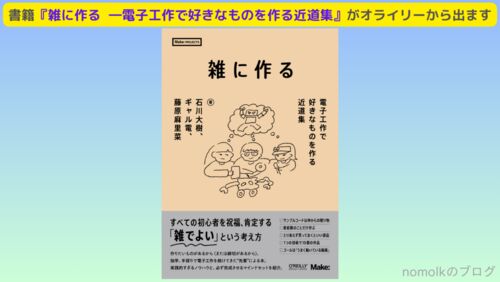 オライリー新刊・近刊情報の中でひときわ異彩を放つ「雑に作る」https://t.co/nZvu2zh3Dl pic.twitter.com/Gs37E5Baz6— メルセデスベン子 (@nomolk) 2023年9月28日 本を書いた。雑に作る ―電子工作で好きなものを作る近道集作者:石川 大樹,ギャル電,藤原 麻…