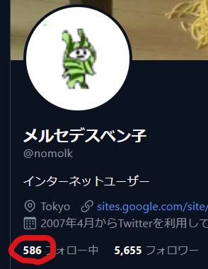 さて、ここまでで586人中、307アカウントについて調査できました。