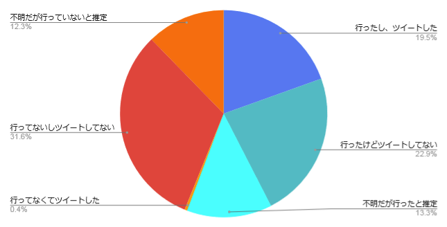 「結果を見る」を除いて集計しなおすと、投票した人のうち43%の人がその旨をツイートしています(執筆時現在)。