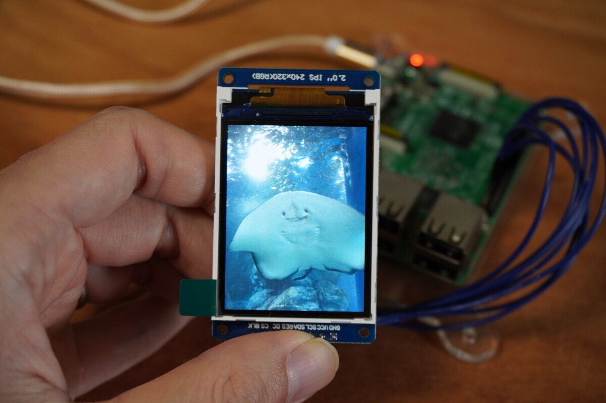 まずRaspberry Piから表示してみます。このディスプレイにいろいろ表示して遊びたいなーという場合は、気軽に画像ファイルなどを扱えるのでRaspberry Piを使うのがいちばんいいと思います。