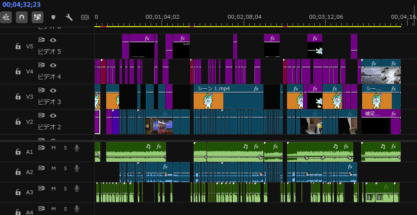 ↑最終的なタイムラインはこんな感じ(全行程終わった後の完成段階)